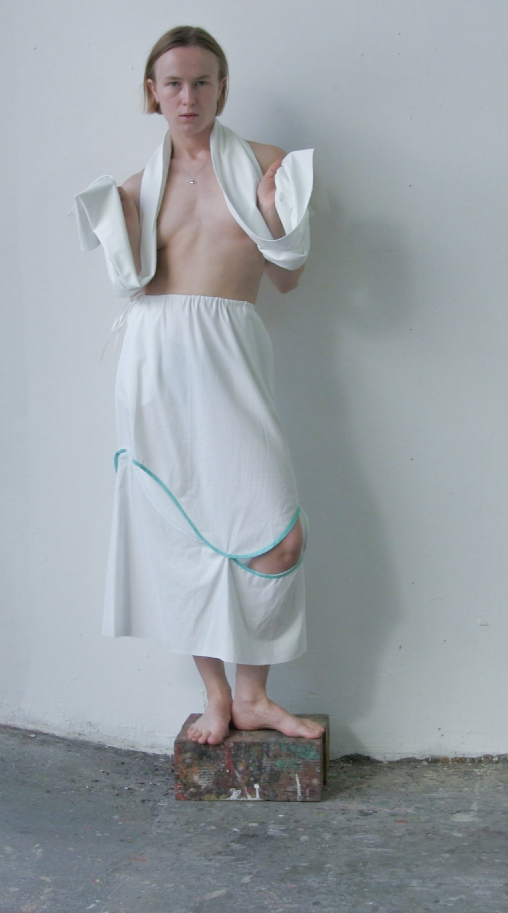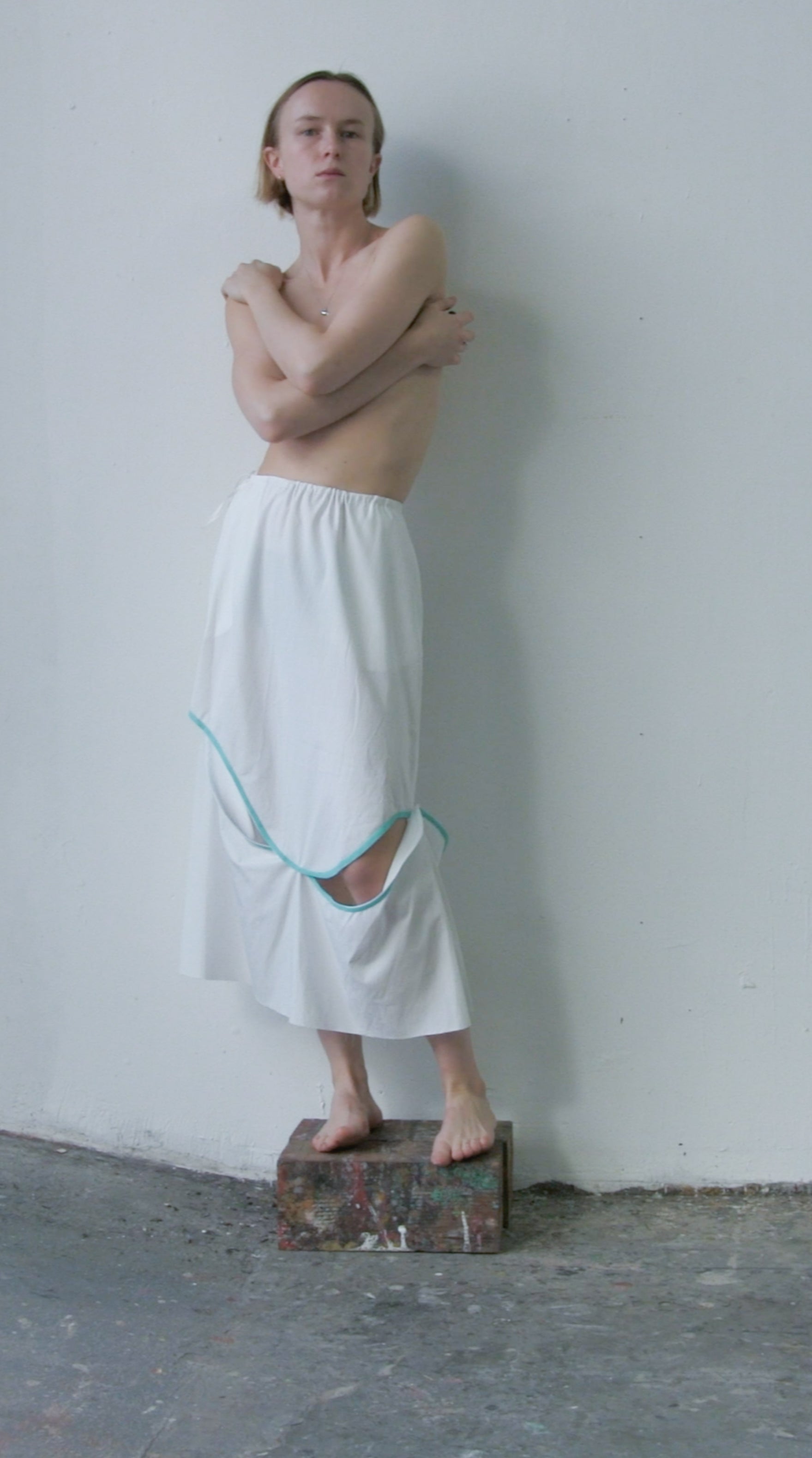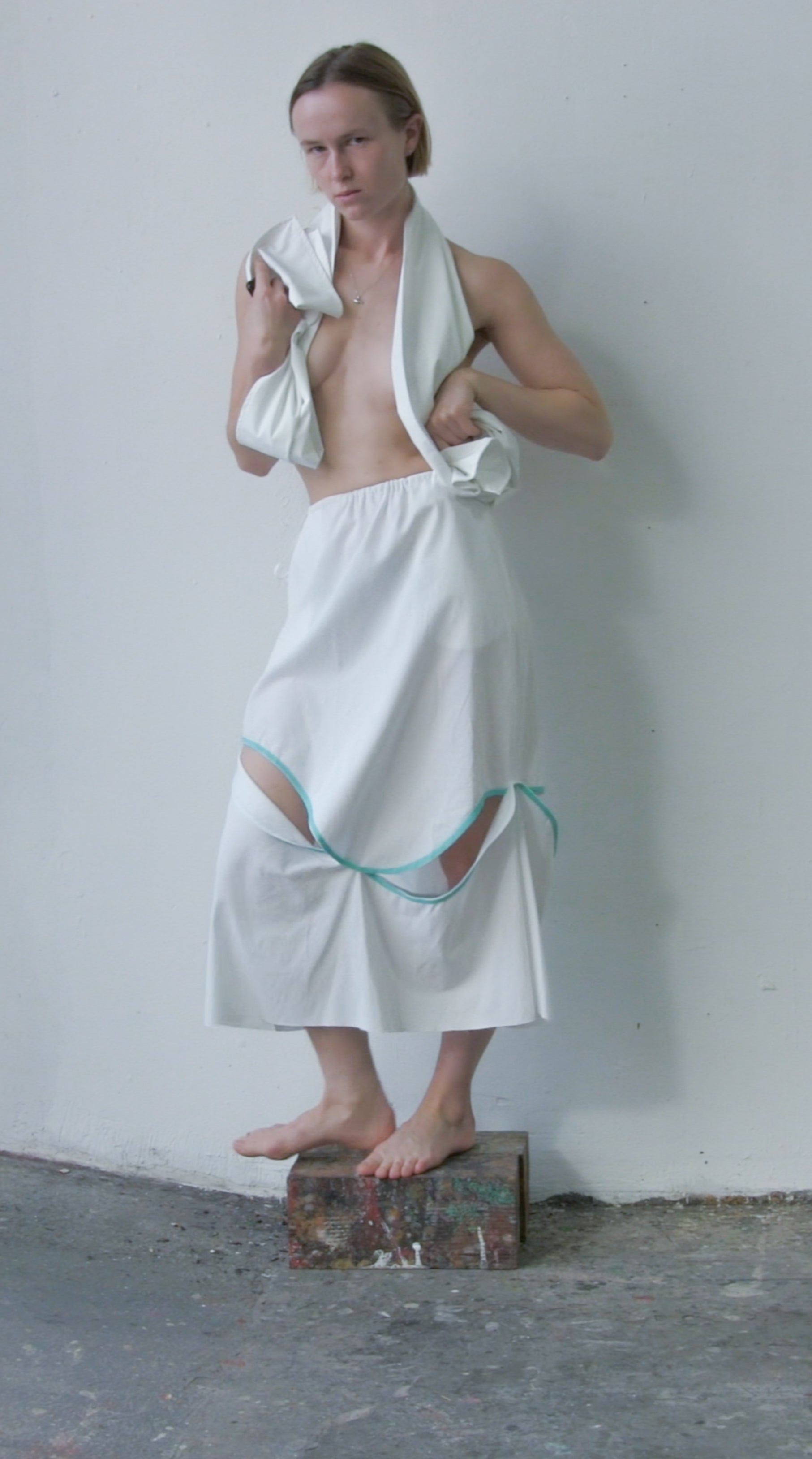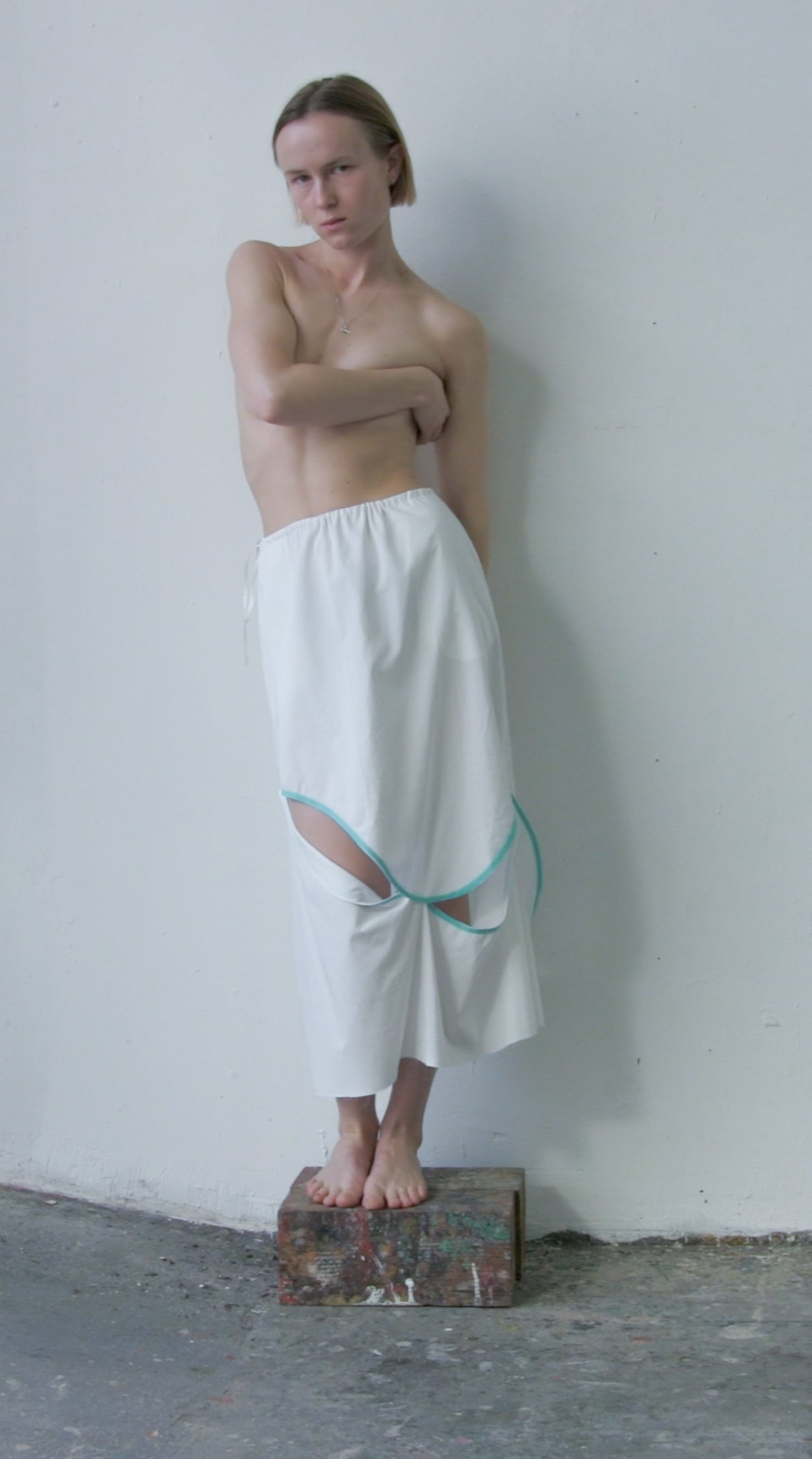 one-of-a-kind skirt made out of a white 100% cotton and a pale yellow 100% transparent viscose. All fabrics are from dead-stock.