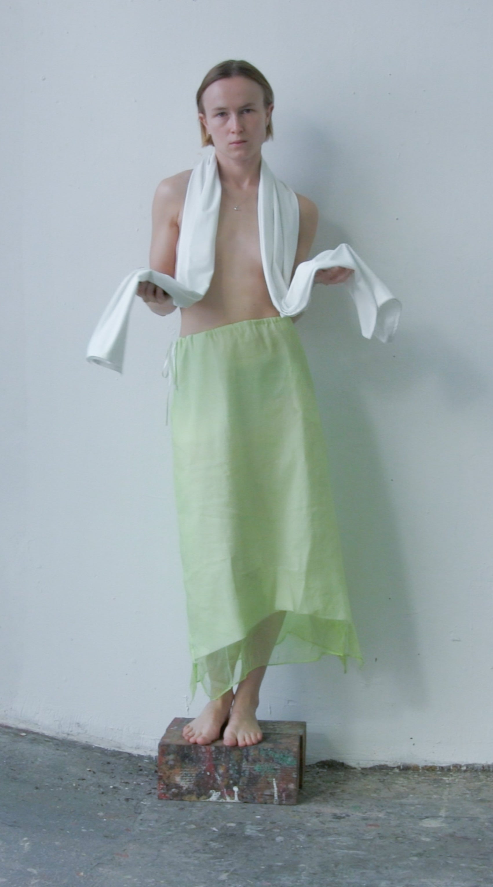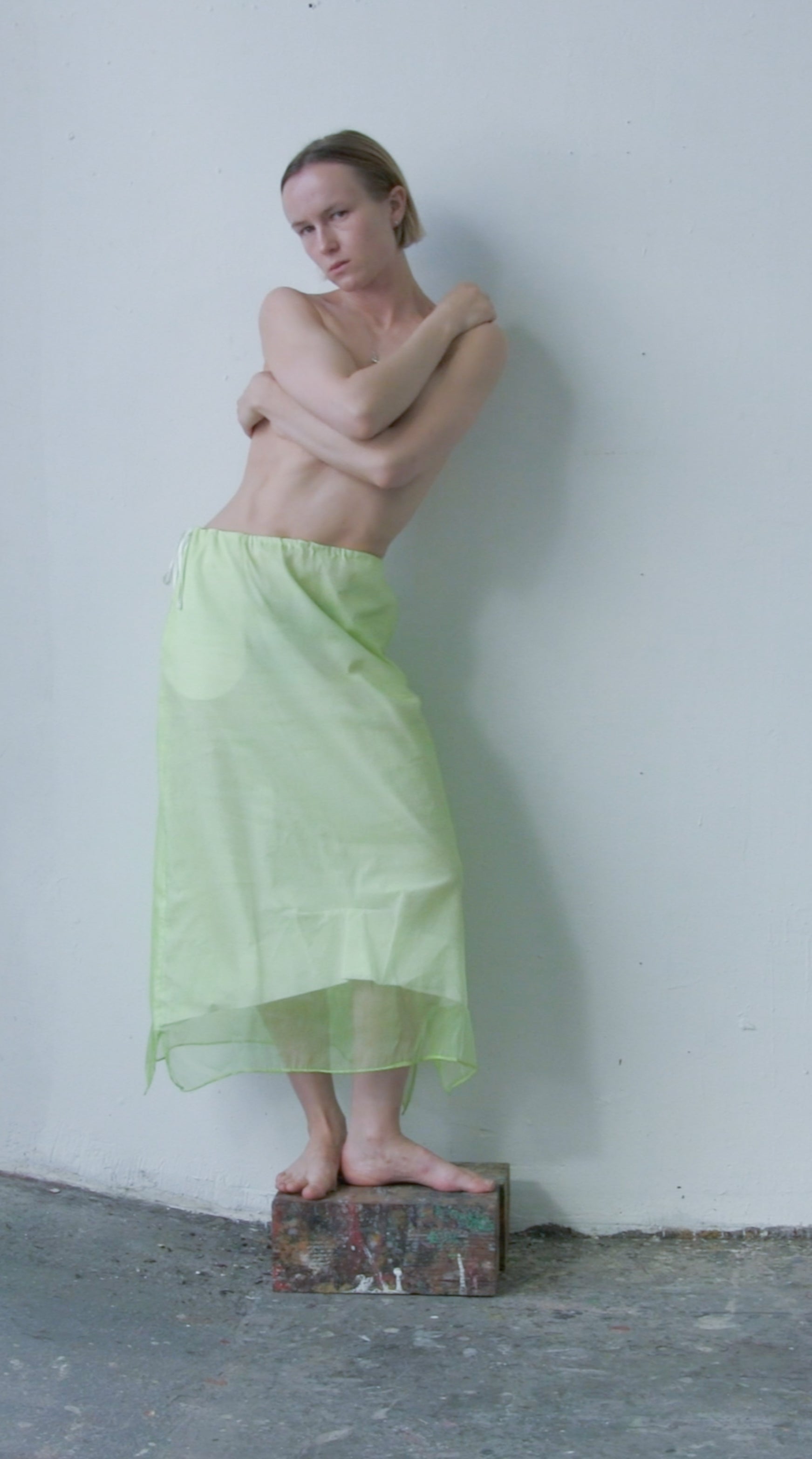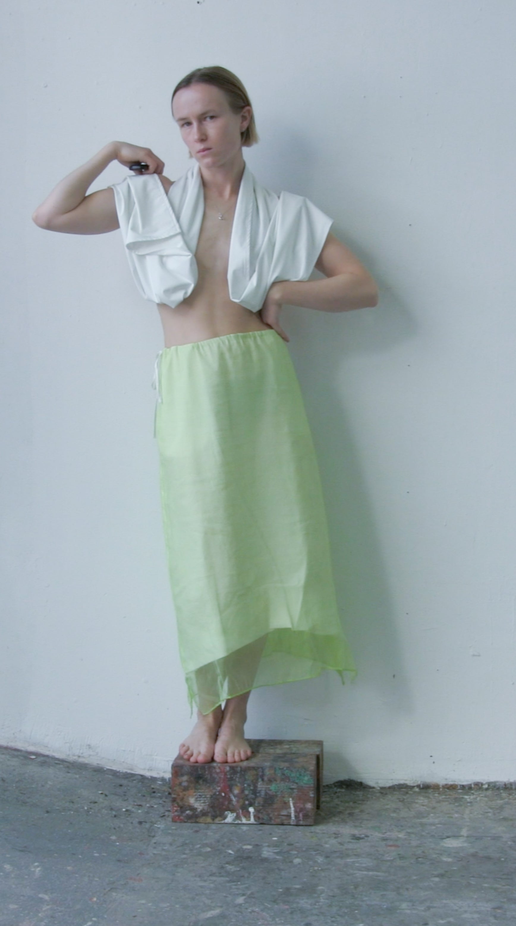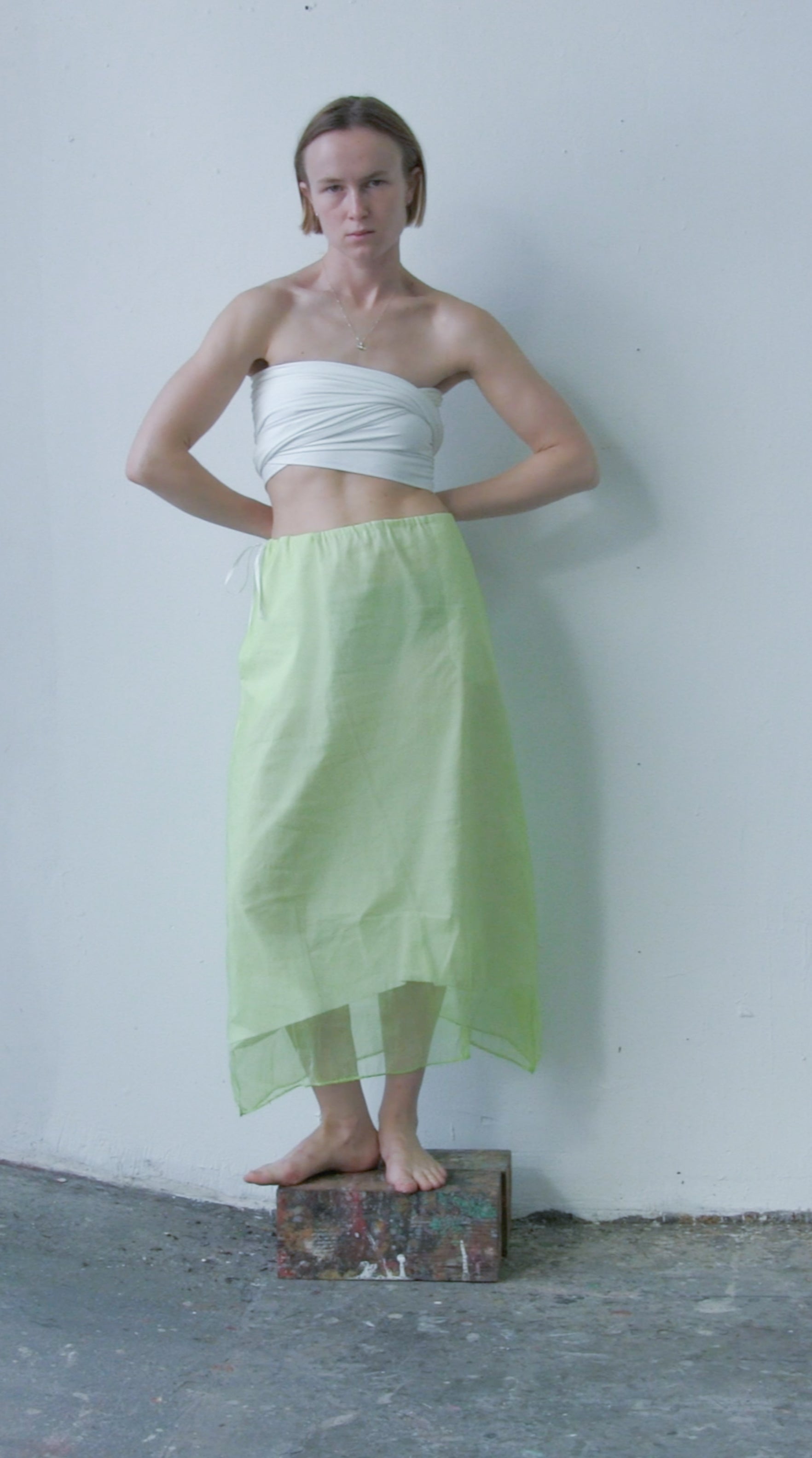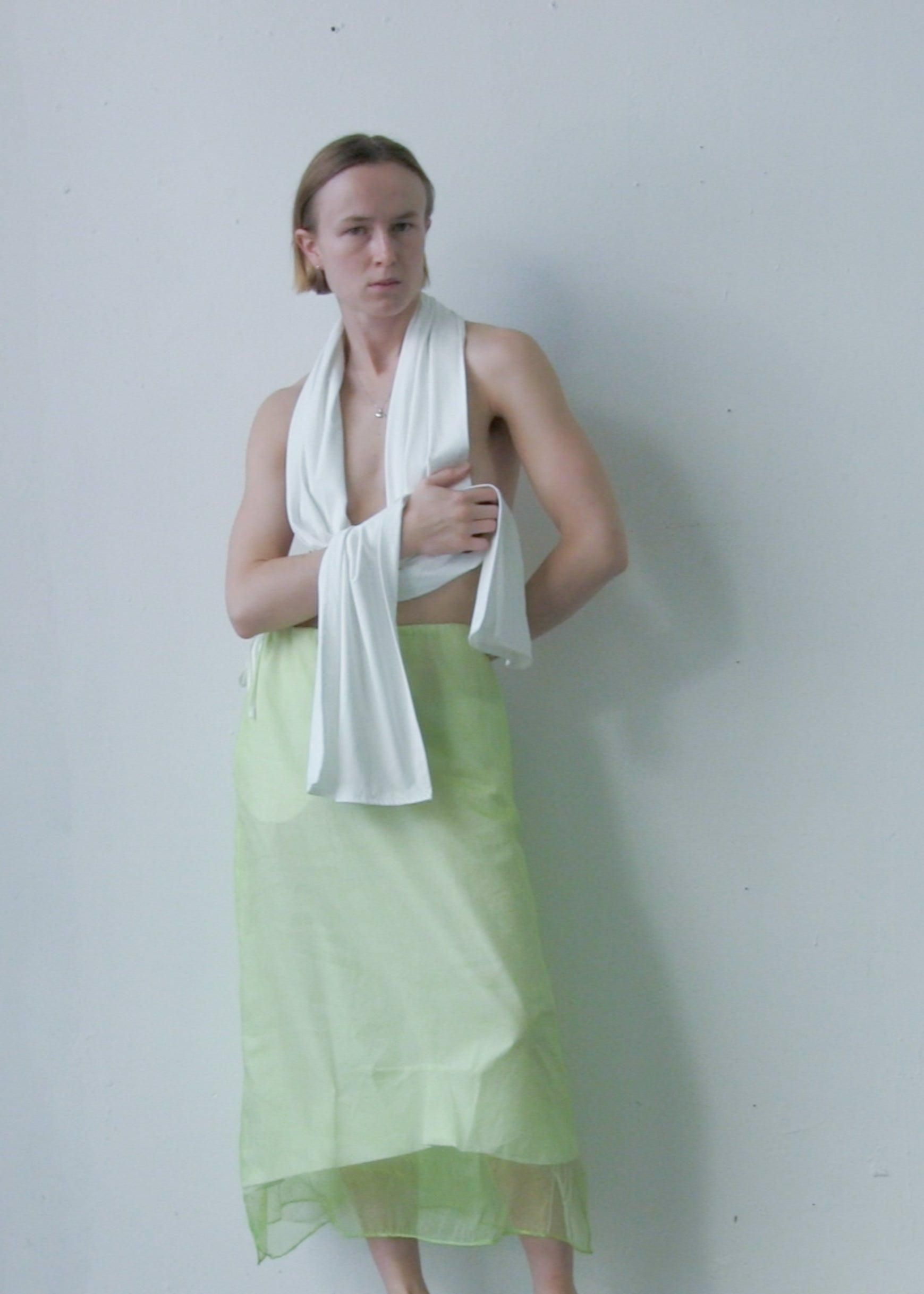 one-of-a-kind skirt made out of a white 100% cotton and green 100% silk organza. All fabrics are from dead-stock.