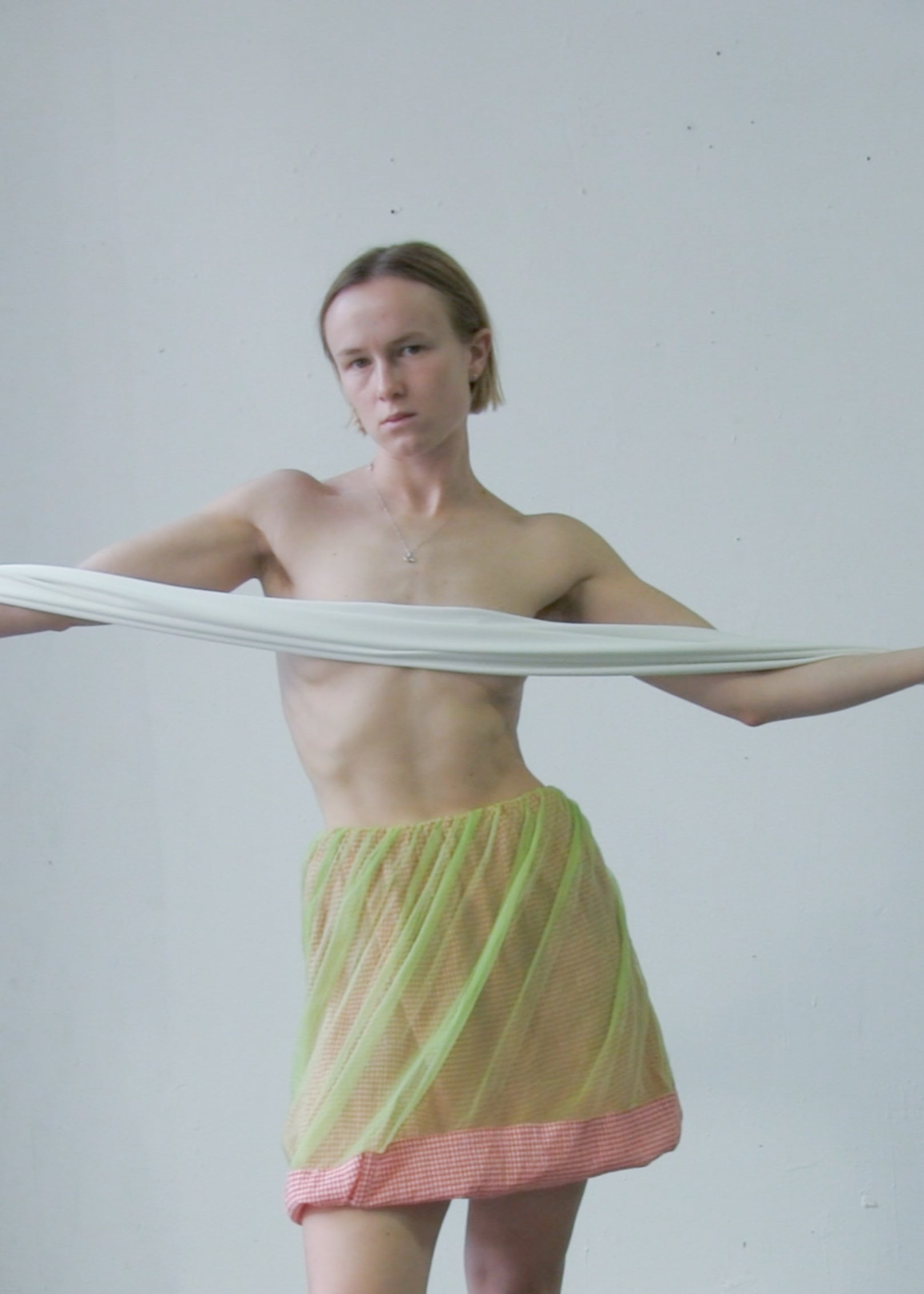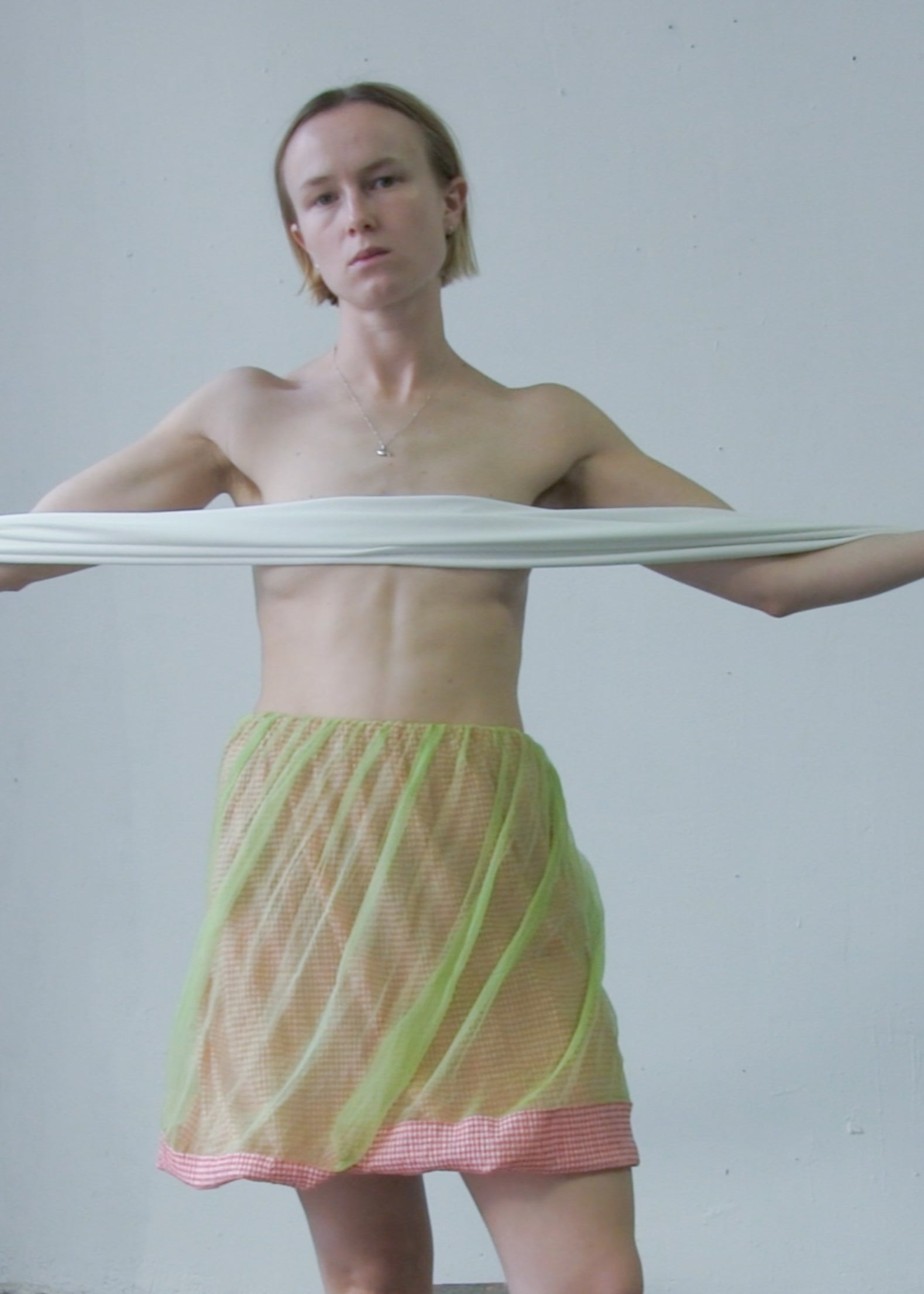 one-of-a-kind skirt made out of a green 100% silk organza and a red and white cotton gingham check. All fabrics are from dead-stock.